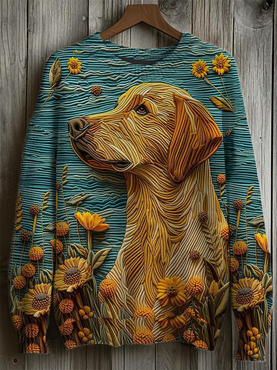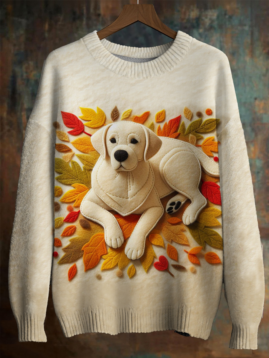 Women's Fuzzy Golden Retriever Dog Felt Cozy Knit Sweater