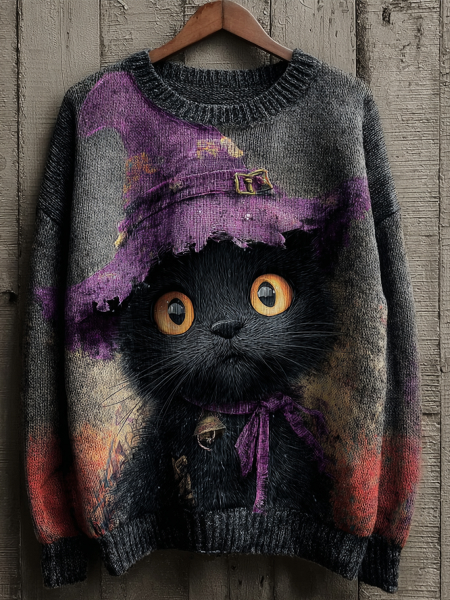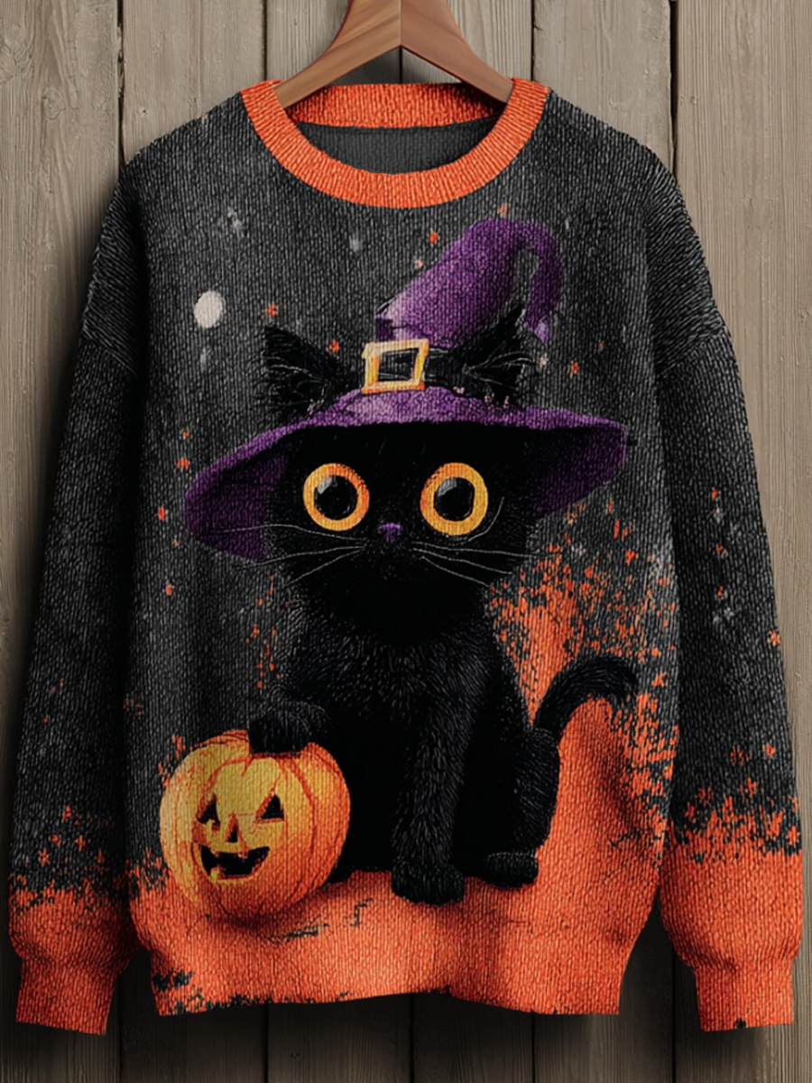 Women's Halloween Witch Black Cat Regular Sweatshirt