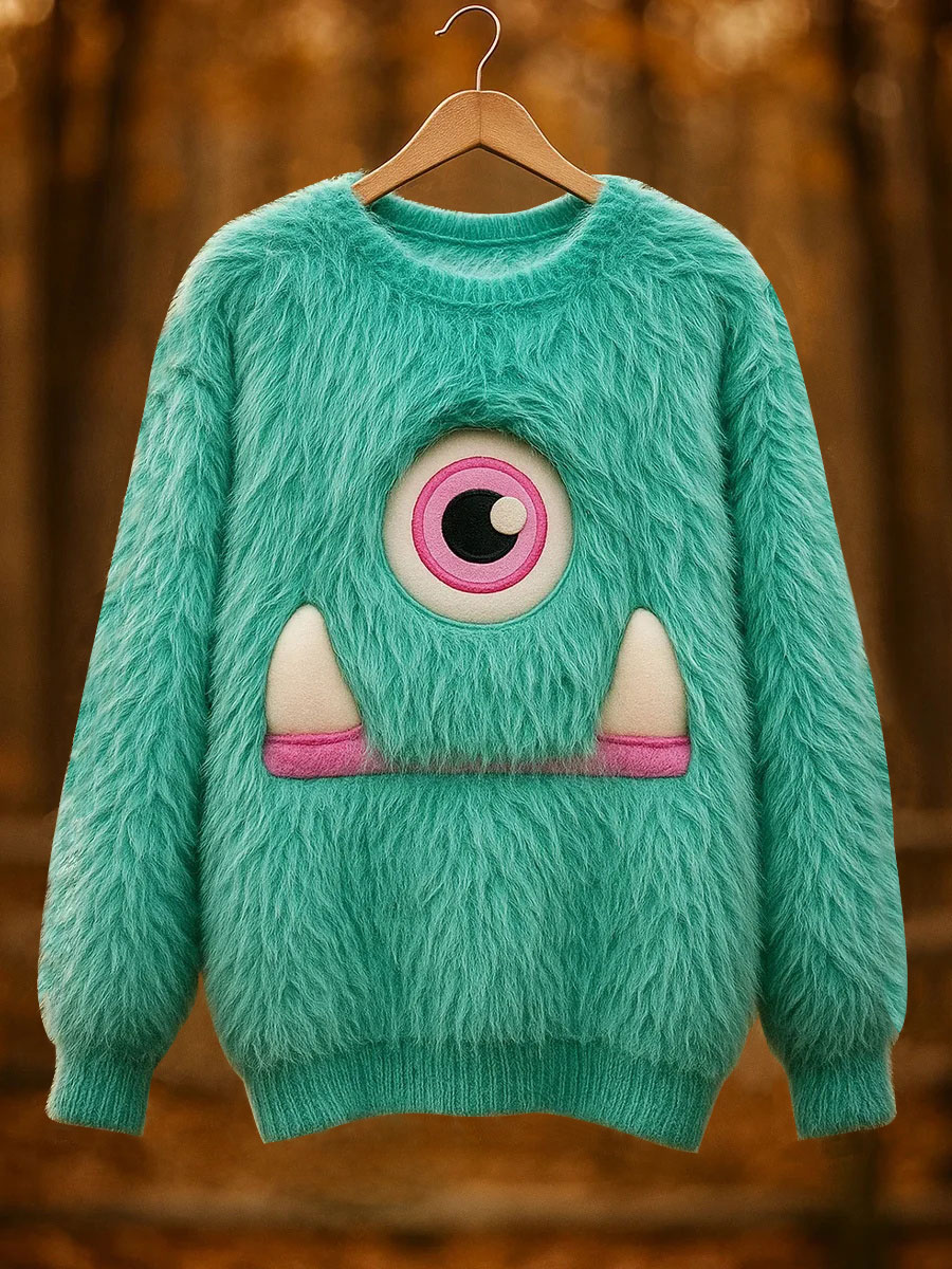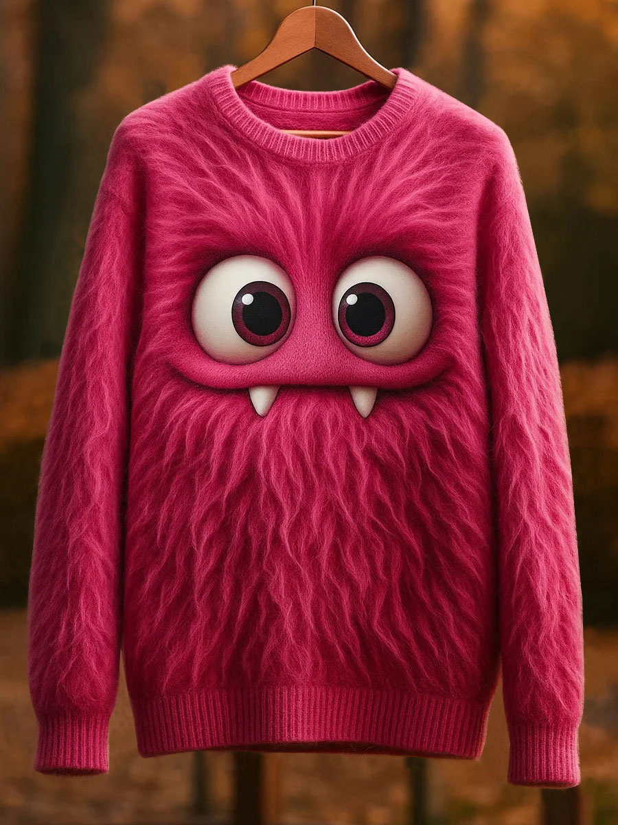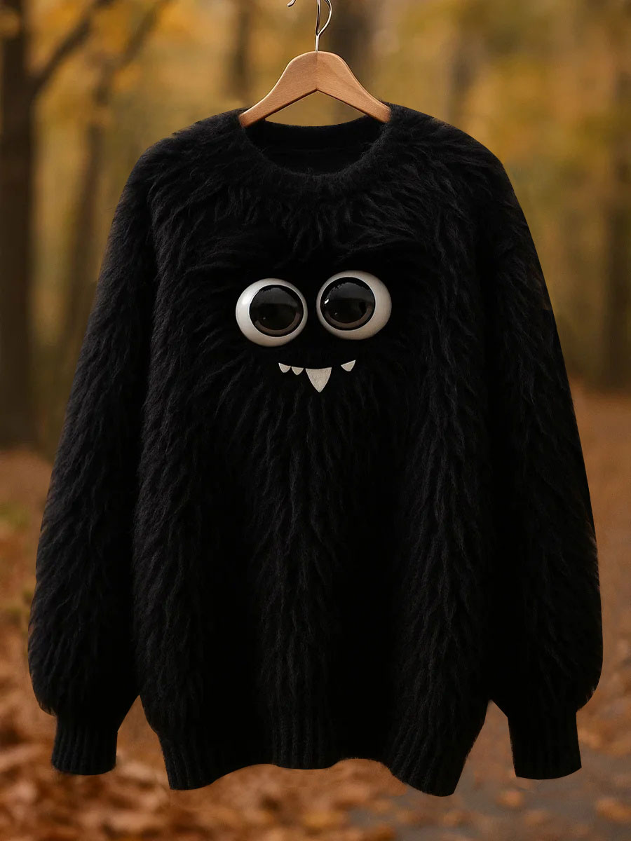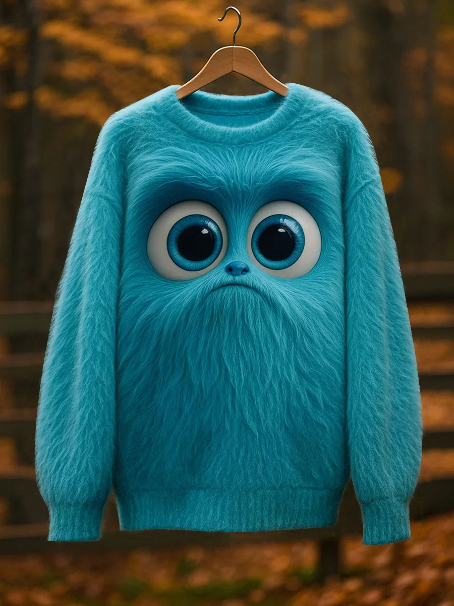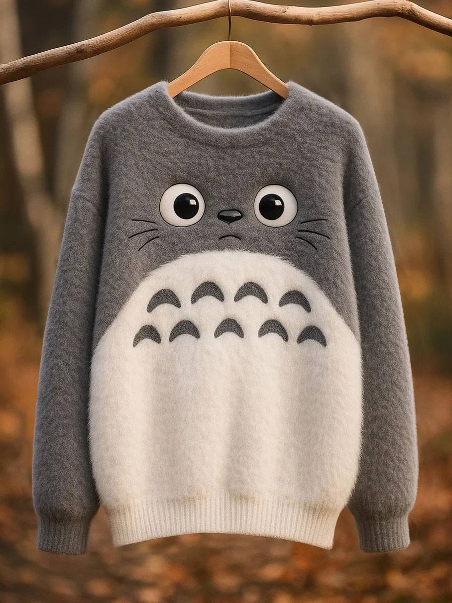 Women's Classic Fuzzy Poodle Dog Felt Cozy Knit Hooded Sweater