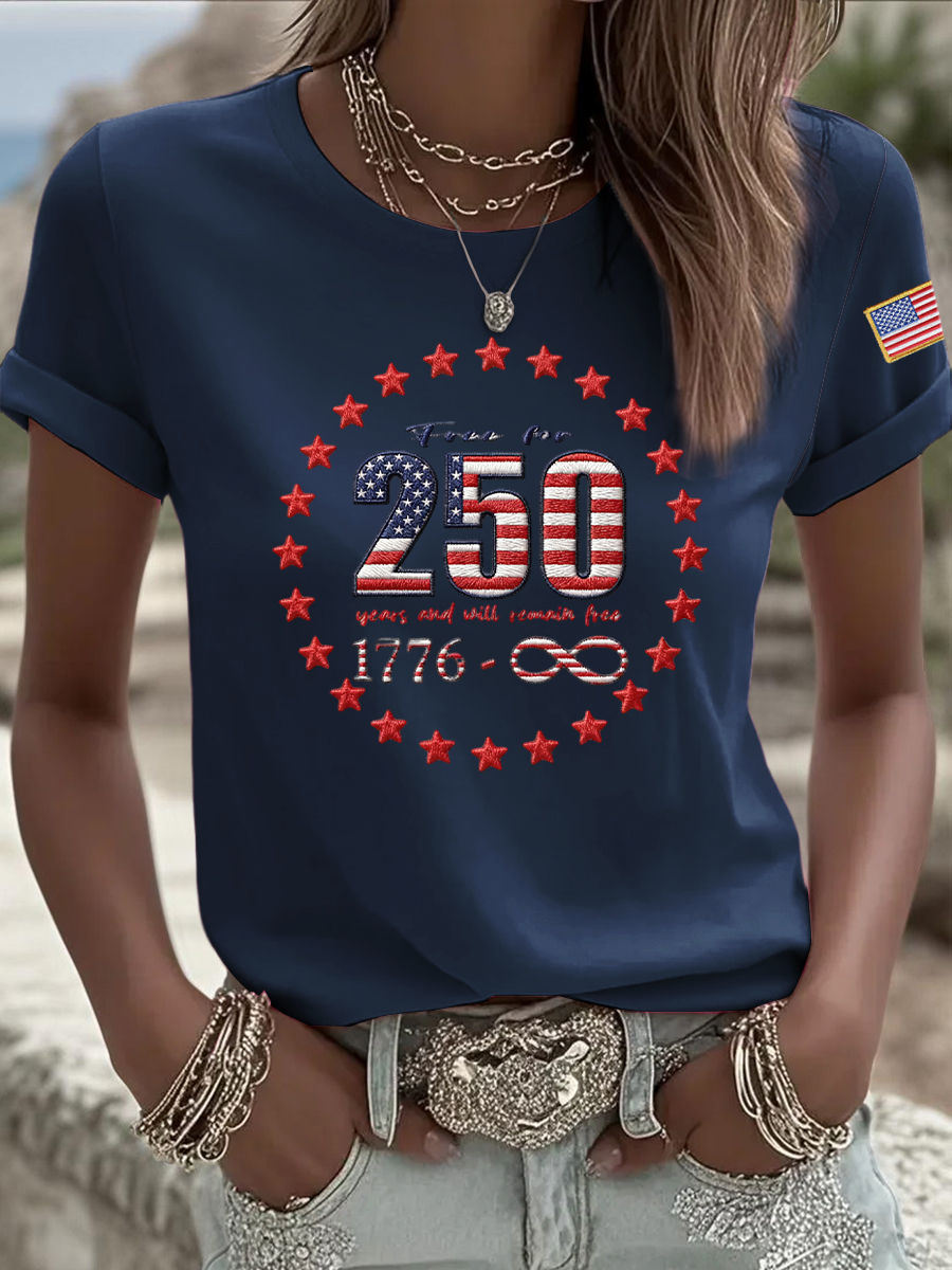Women's Retro 250th Anniversary Abstract Flag Casual T-Shirt