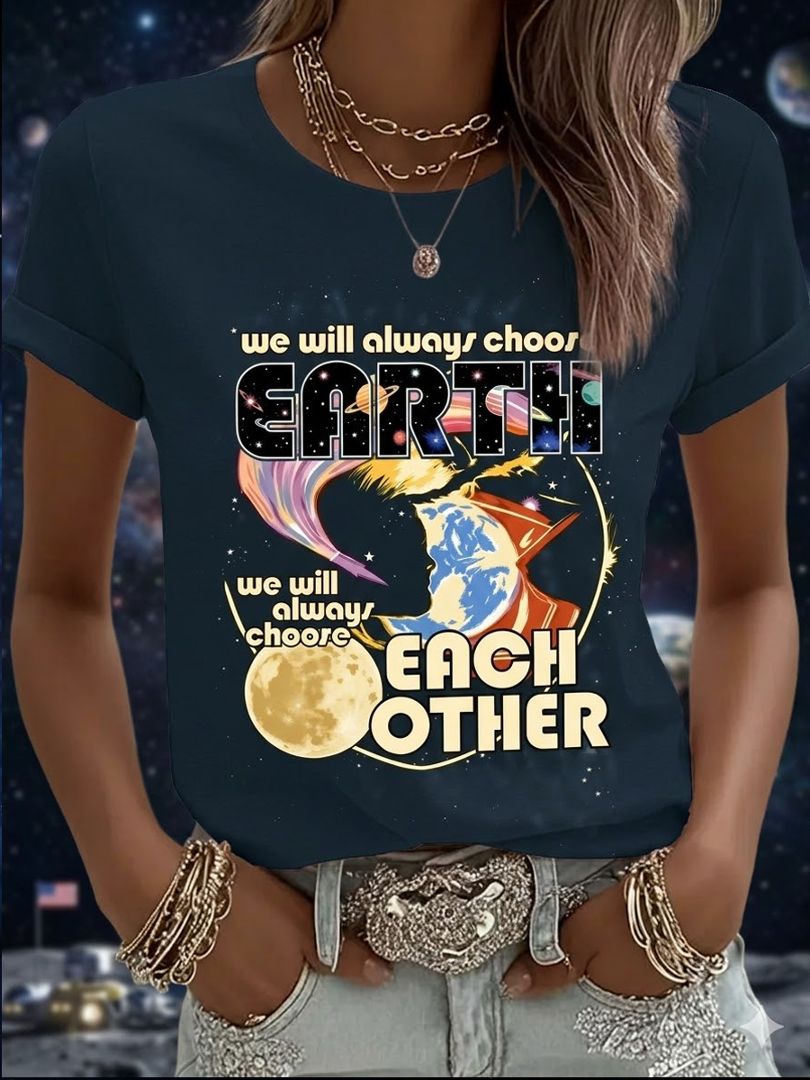 Women's We Will Always Choose Each Other 2026 Artemis II Print Casual Tee