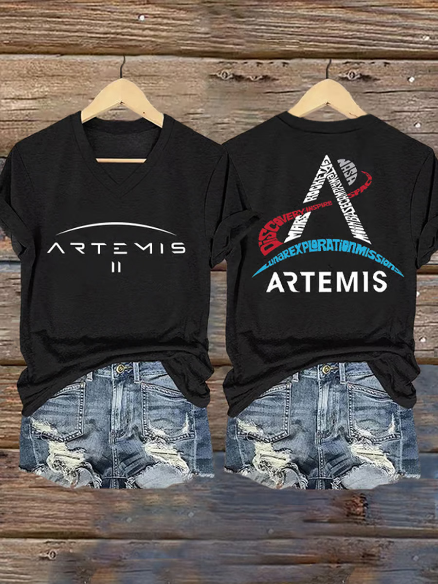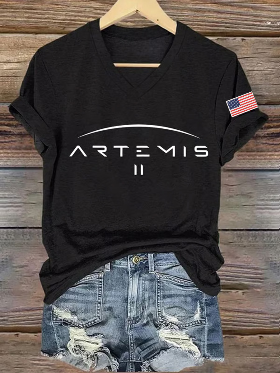 Women's Artemis II 2026 Print Casual V-Neck Tee