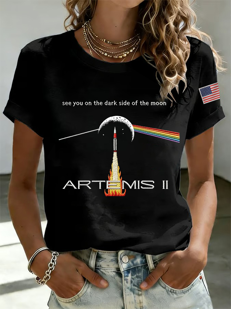 Women's See You On The Dark Side Of The Moon Artemis II 2026 Print Casual Tee