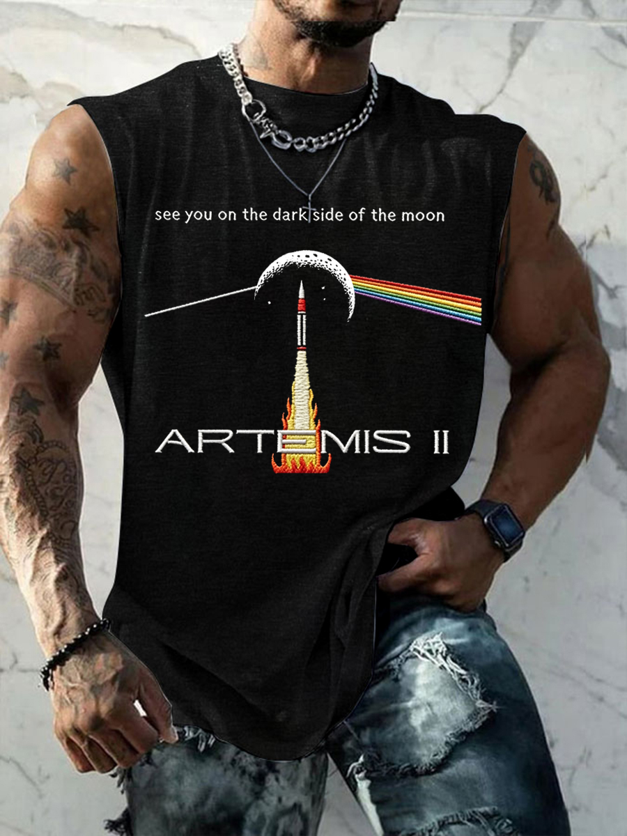 Men's See You On The Dark Side Of The Moon Artemis II 2026 Print Casual Tank Top