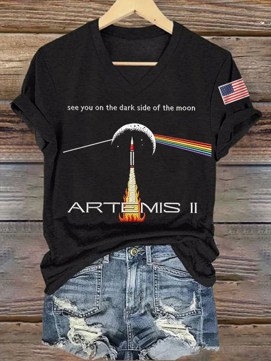 Women's See You On The Dark Side Of The Moon Artemis II 2026 Print Casual V-Neck Tee