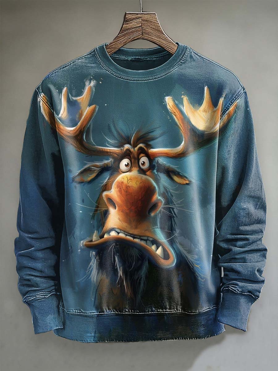 Funny Reindeer Print Casual Crewneck Sweatshirt
