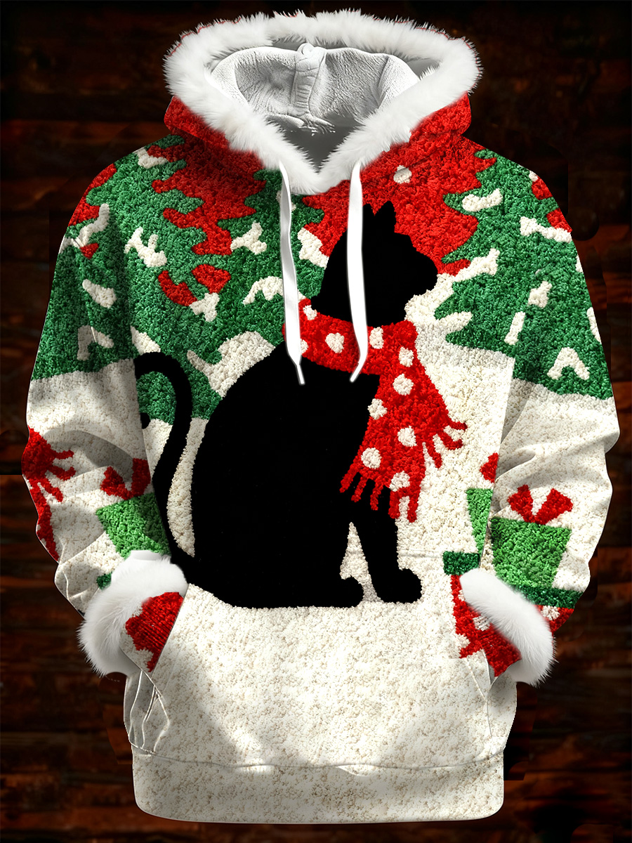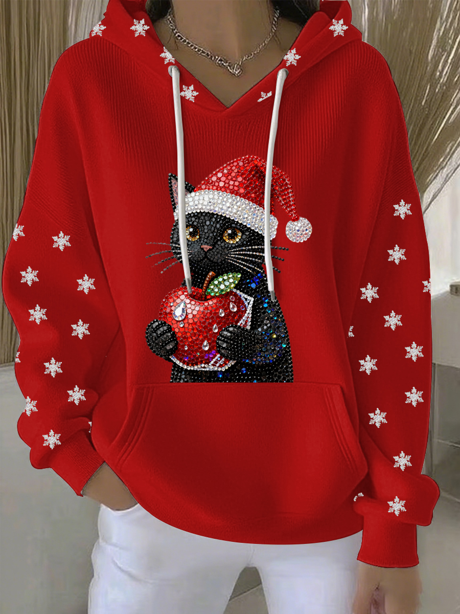 Women's Cute Christmas Cat Art Drawstring Hoodie