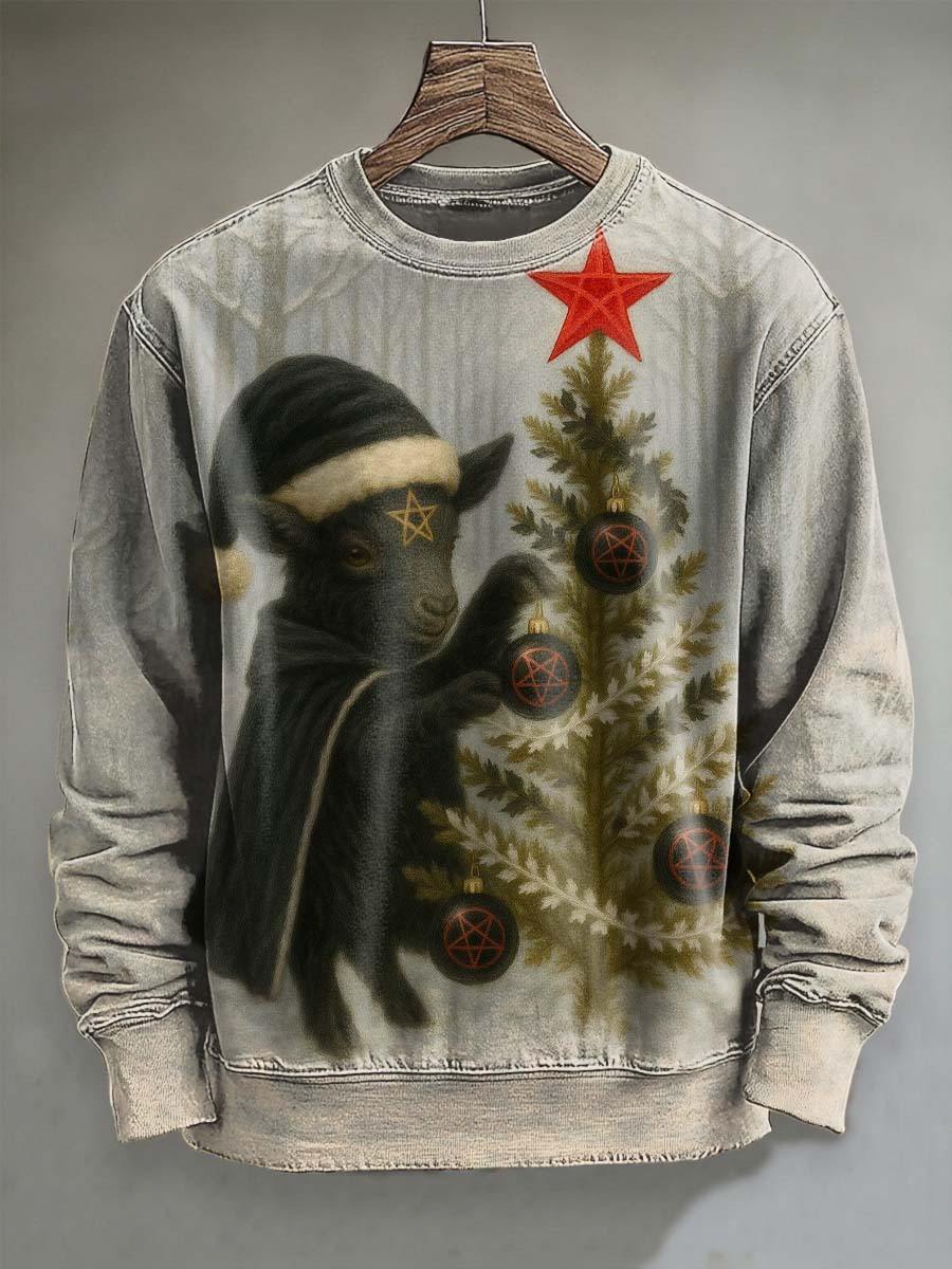 Goat Little Satan Print Casual Crewneck Sweatshirt