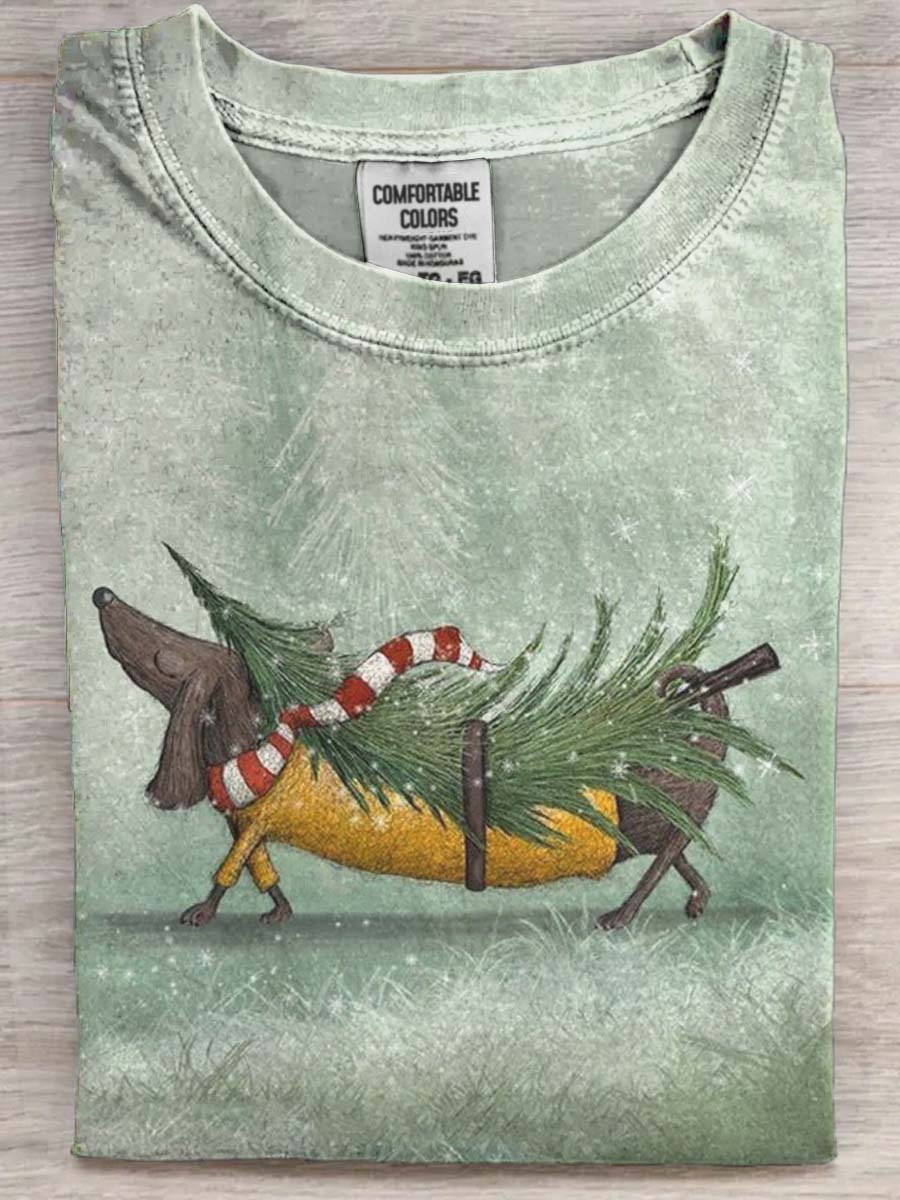 Christmas Dachshund Print Casual Short-Sleeve T-Shirt