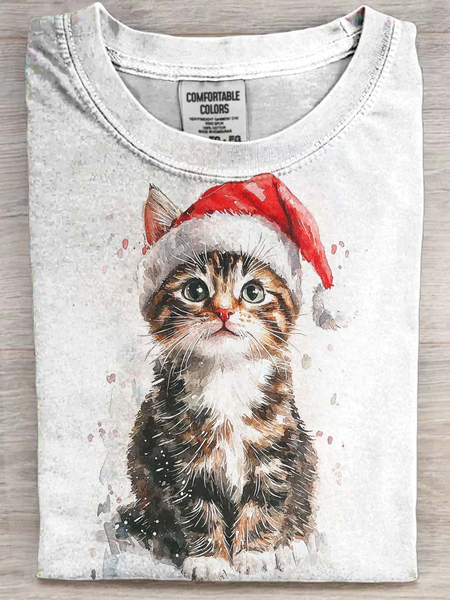 Cute Kitten Print Christmas Casual Short-Sleeve T-Shirt