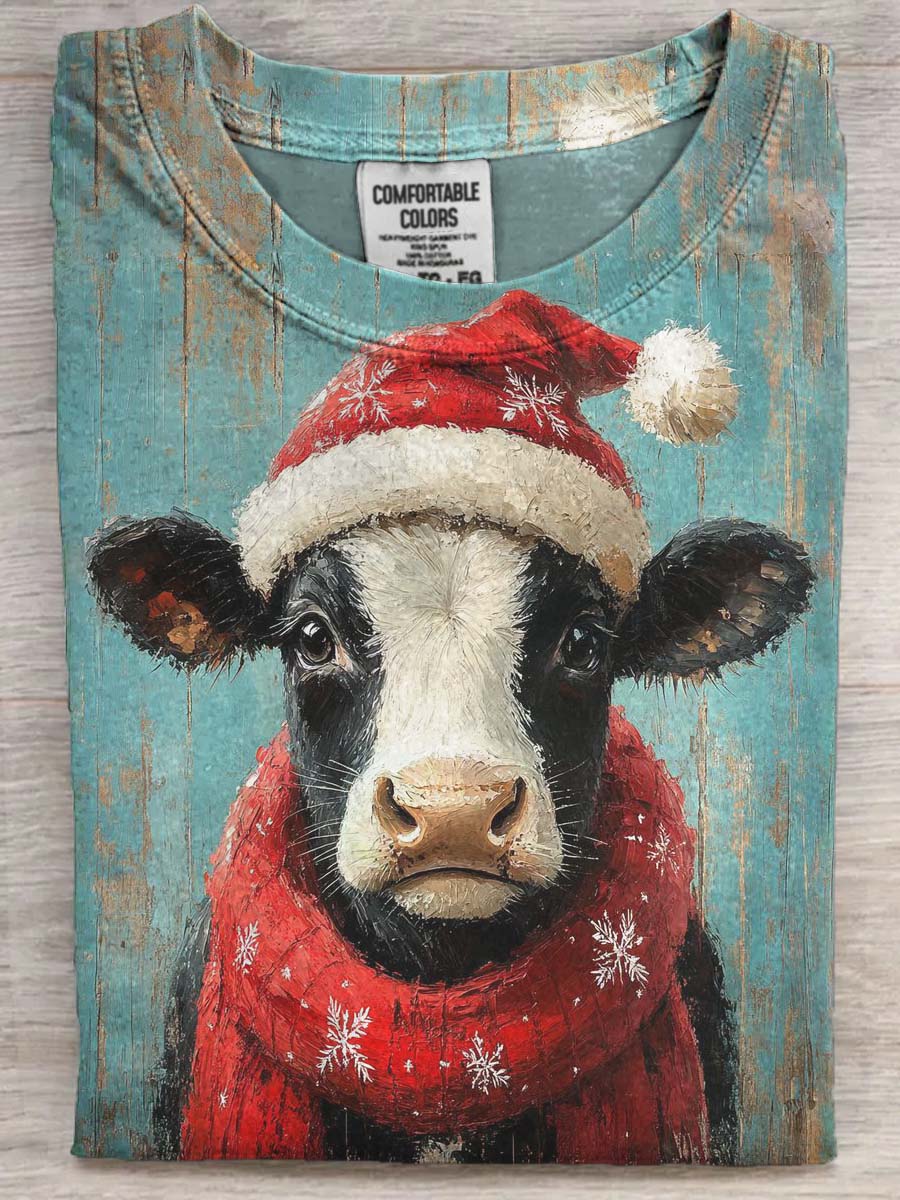 Christmas Cow Print Casual Short-Sleeve T-Shirt