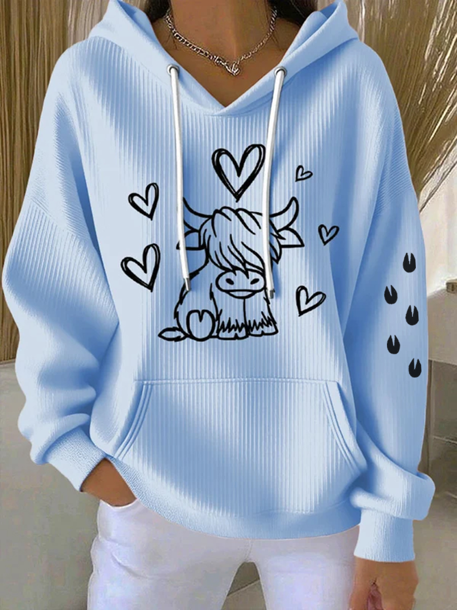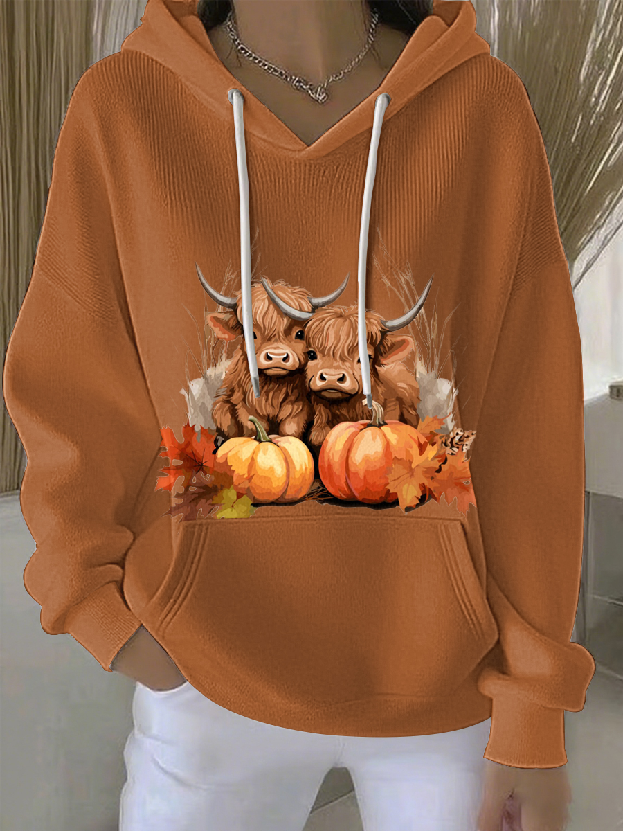 Women's Autumn Animal Highland Cow Print Casual Hoodie