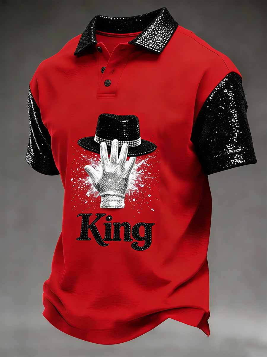 Men's Vintage Commemorative King of Pop Printed Polo Shirt