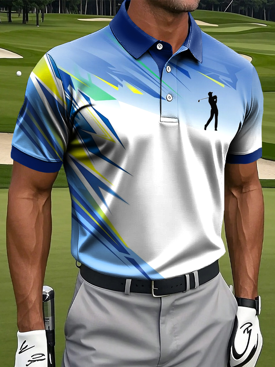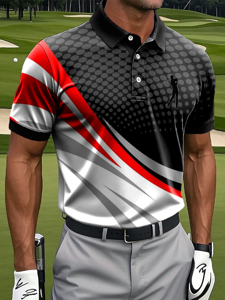 Men's Classic Abstract Line Splicing Art Print Casual Business Polo Shirt