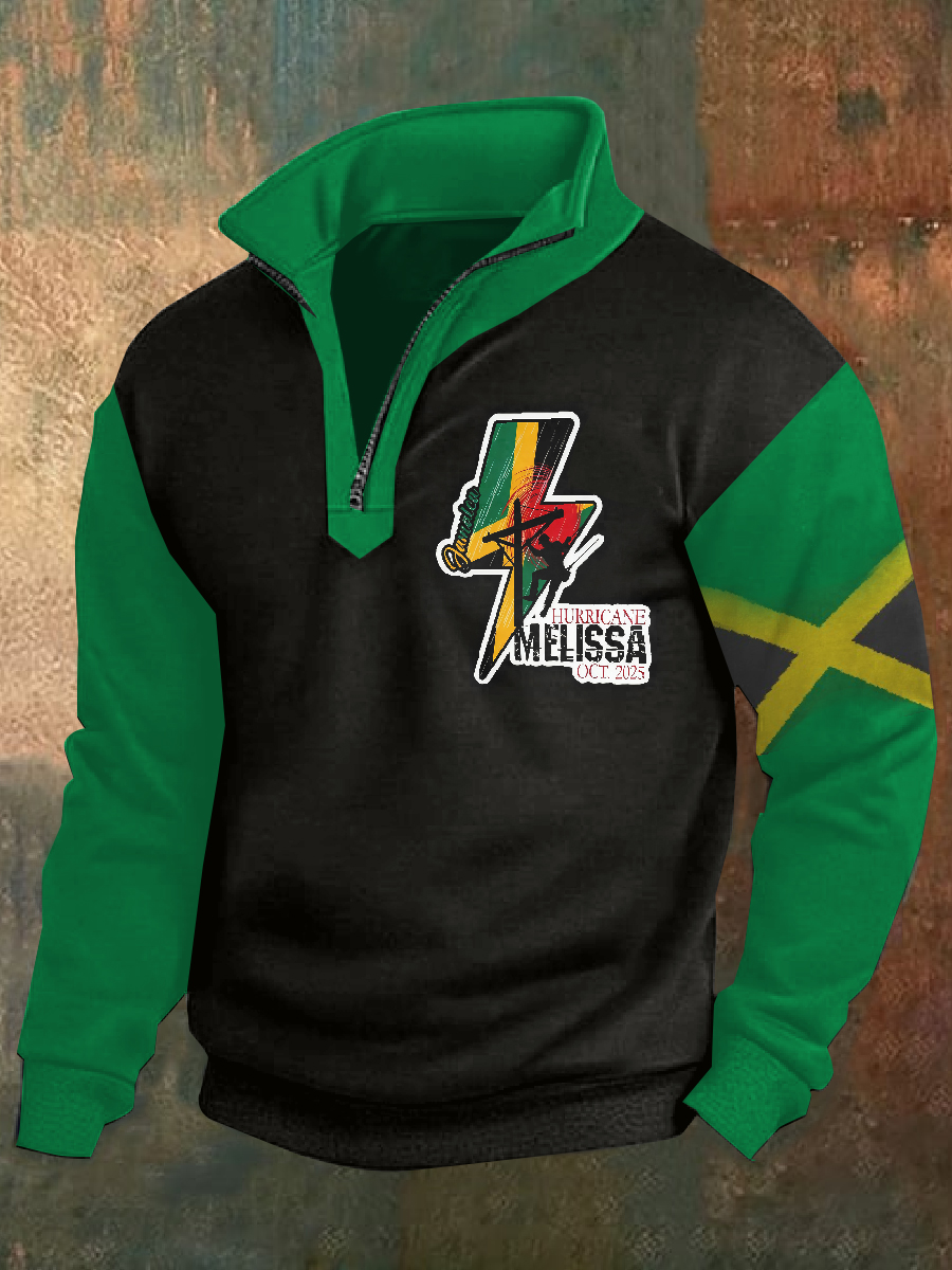 Retro Jamaican Hurricane Melissa Print Casual Sweatshirt