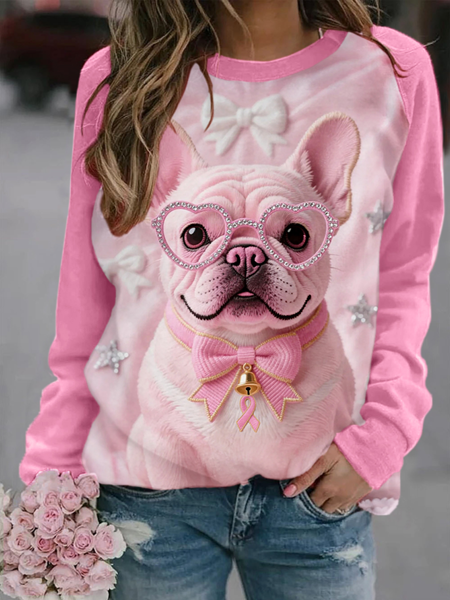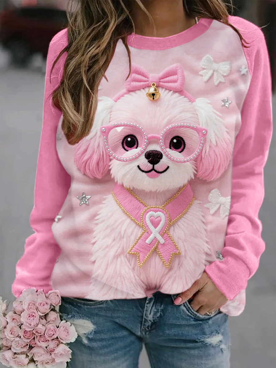 Women's Pink Dog Pink Ribbon Breast Cancer Awareness Sweatshirt