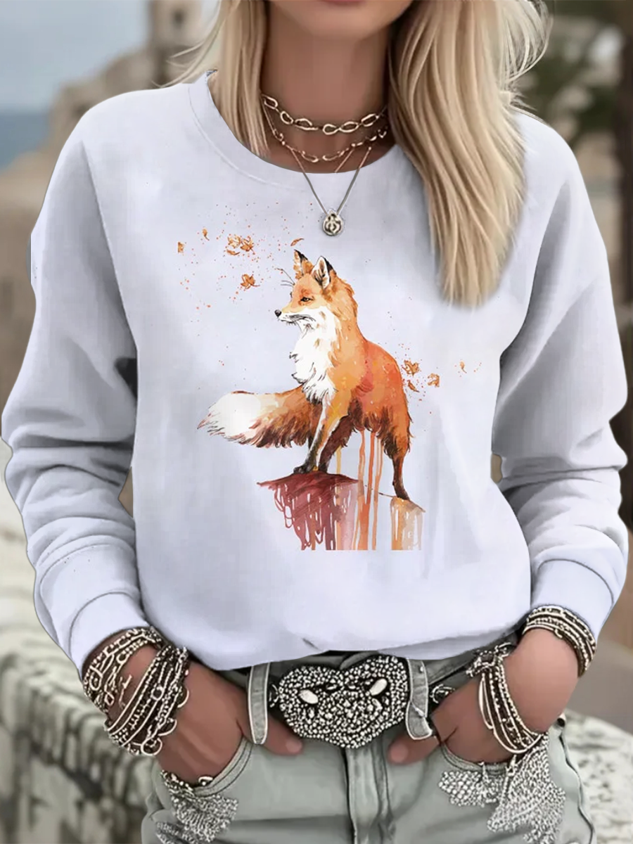 Women's Vintage Abstract Colored Cat Art Sweatshirt