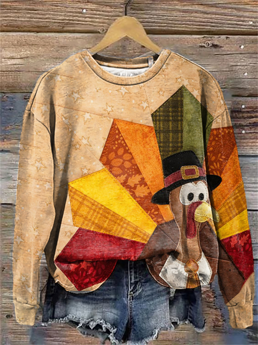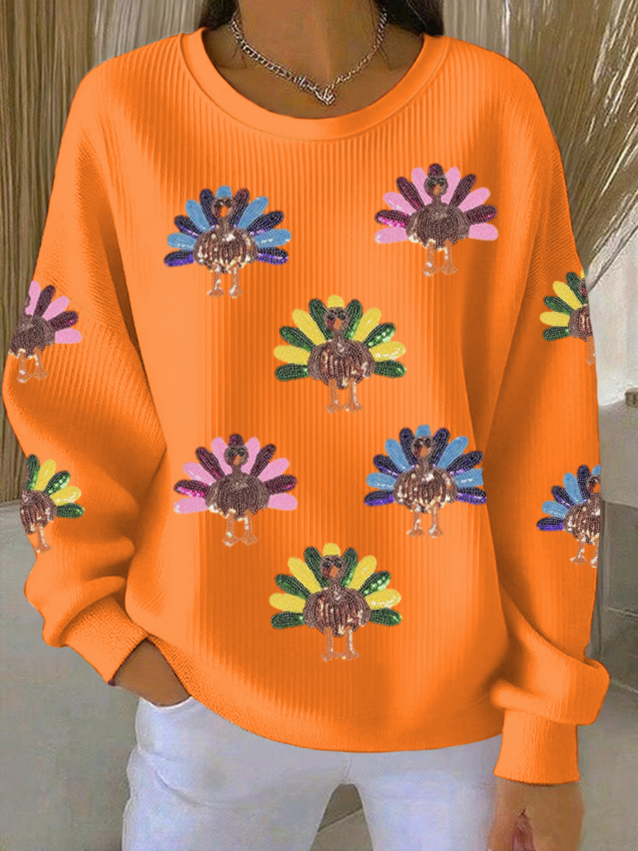 Women's Thanksgiving Turkey Print Casual Sweatshirt