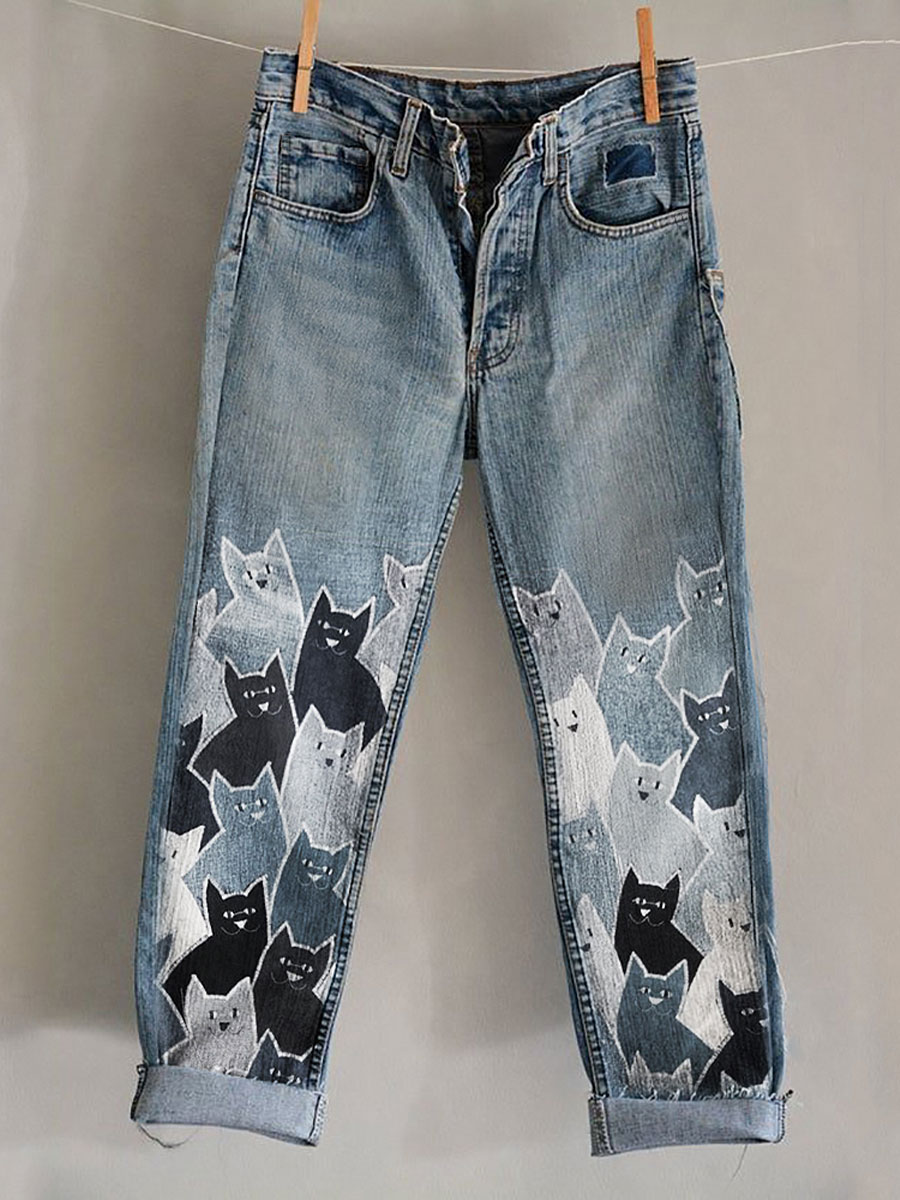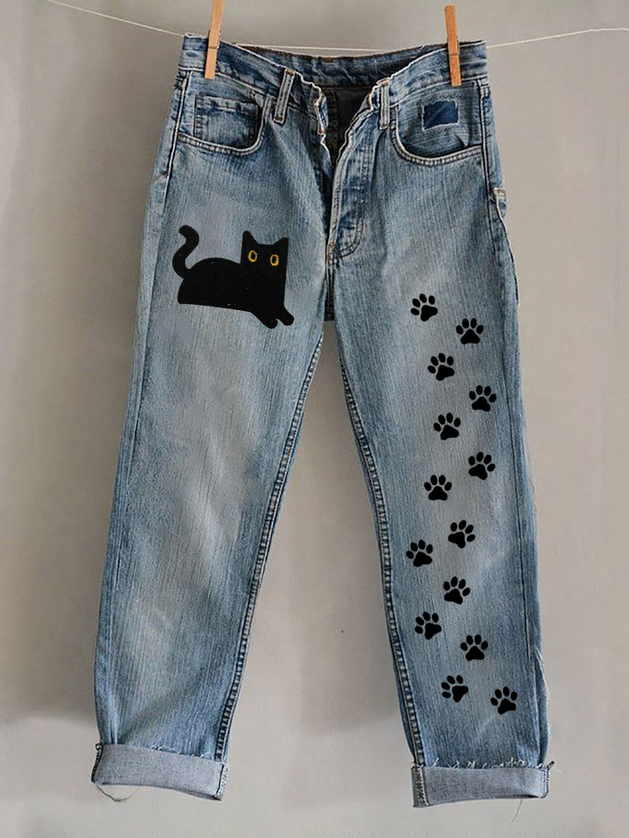 Women's Vintage Black Cat Casual Pants