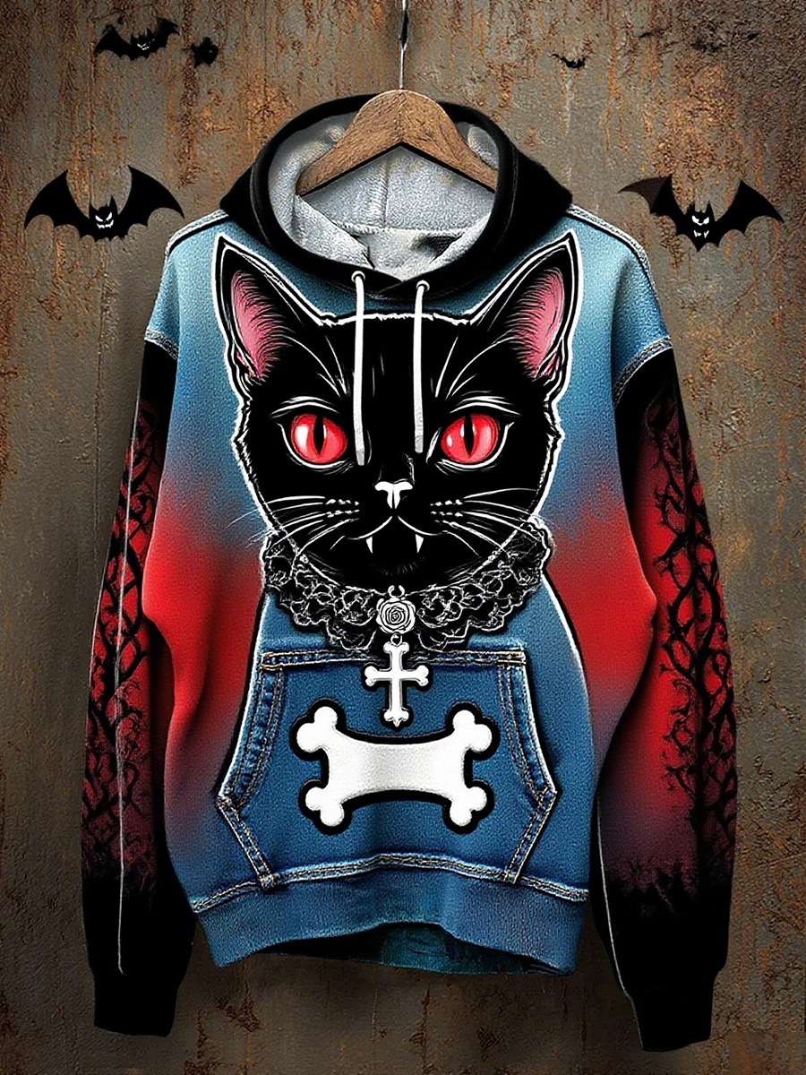 Women's Cute Pug Embroidery Art Loose Comfortable Knitted Oversized Hooded Sweatshirt