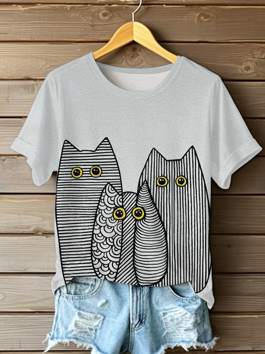 Women's Cute Cat Printed Short Sleeve T-Shirt