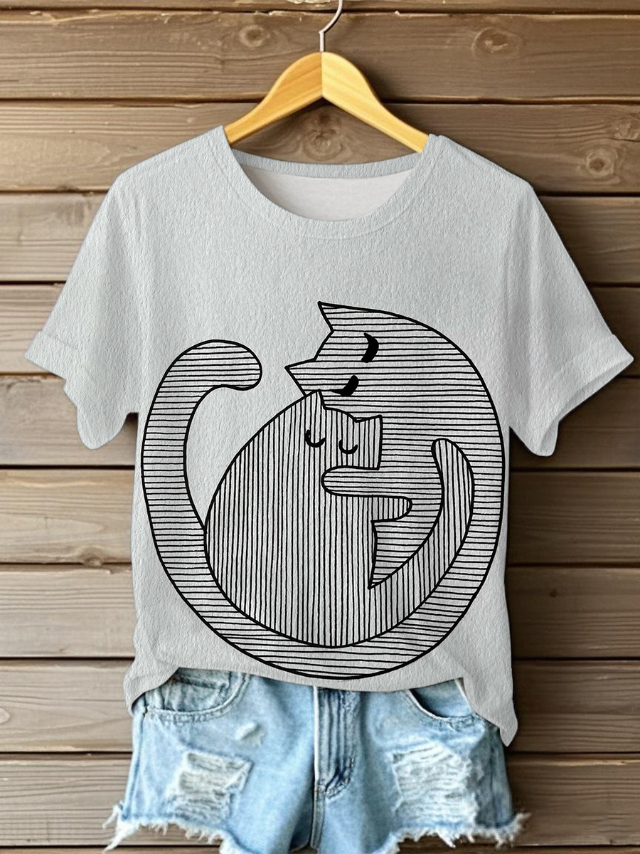 Women's Cute Line Cats Short-sleeved T-shirt