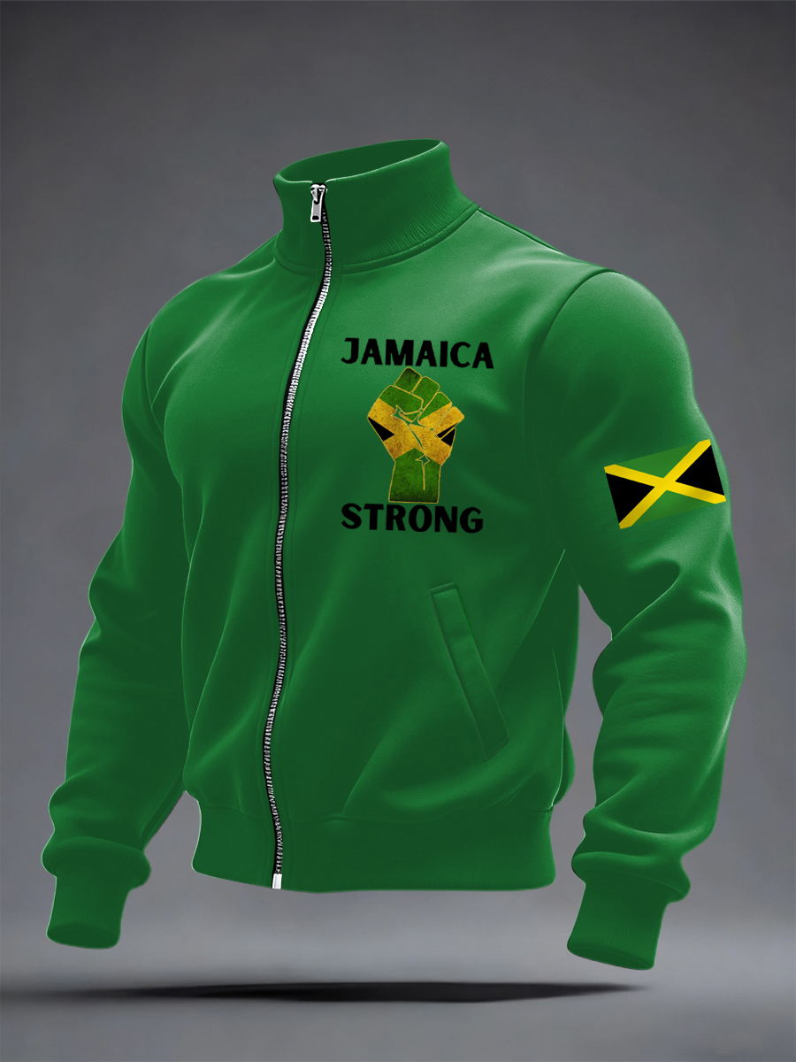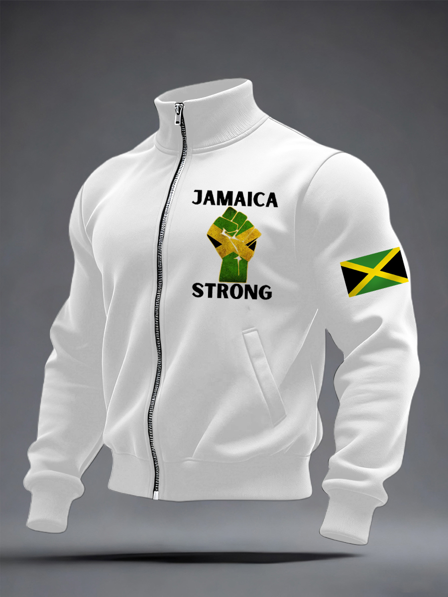 Men's Jamaica Strong Print Casual Zipper Sweatshirt