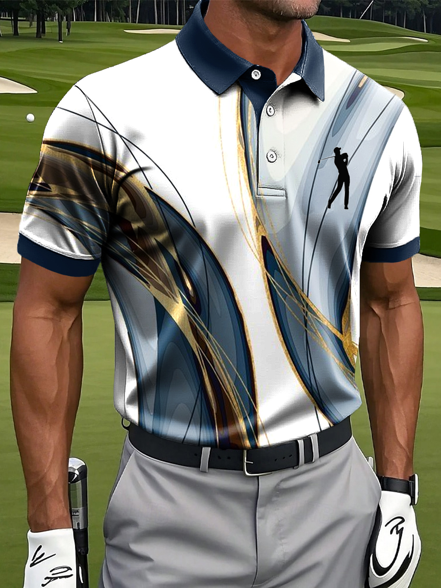 Men's Retro Abstract Line Art Print Casual Business Polo Shirt