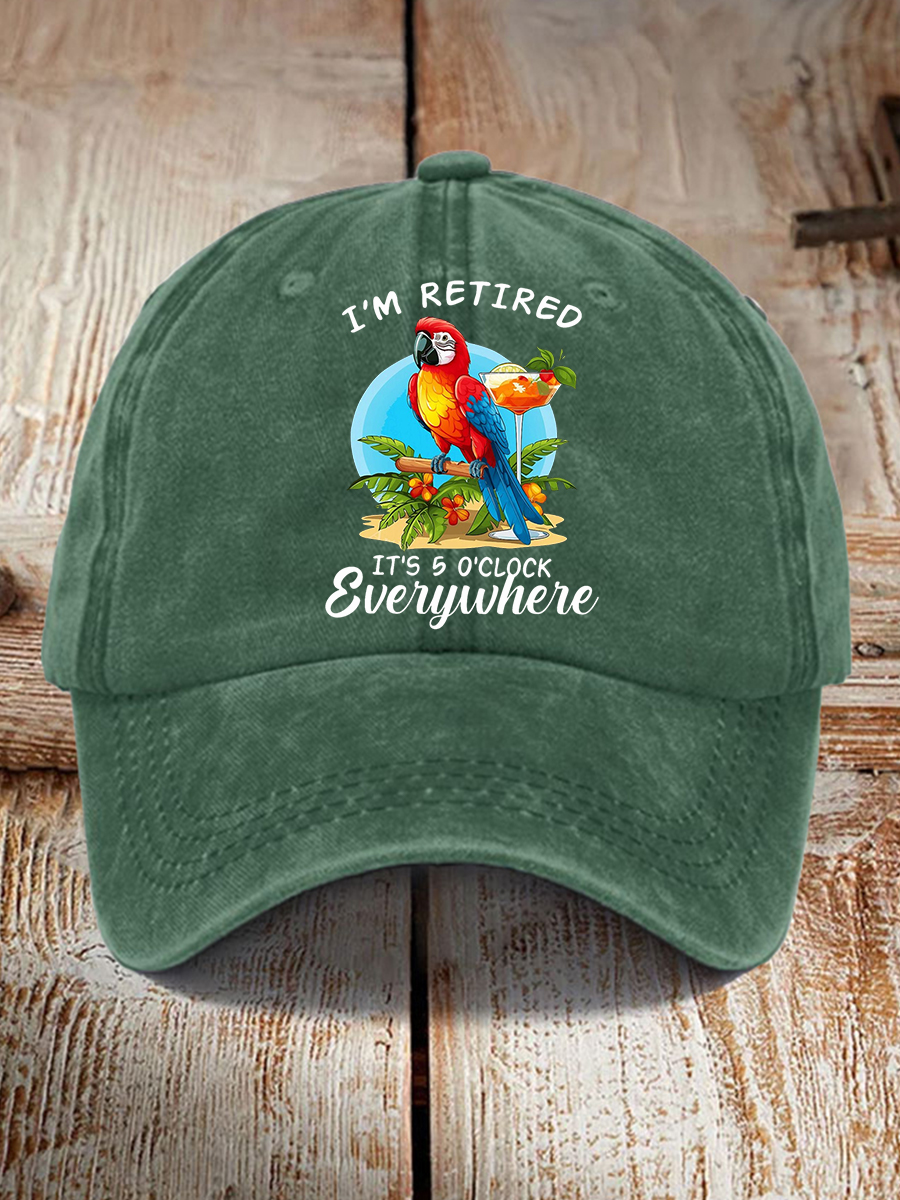 Unisex I'm Retired It's 5 O'clock Somewhere Parrot Print Hat