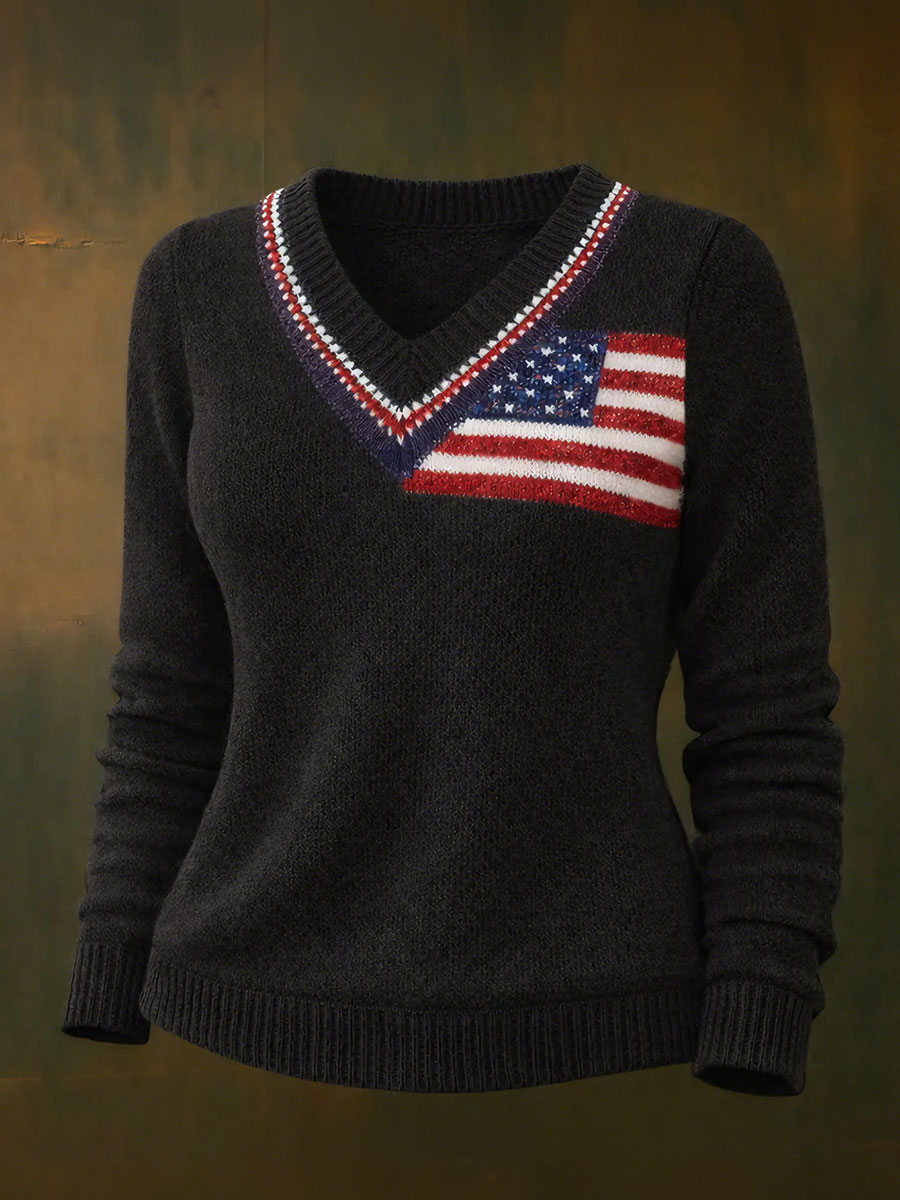 Women's American Flag Casual V-Neck Tops