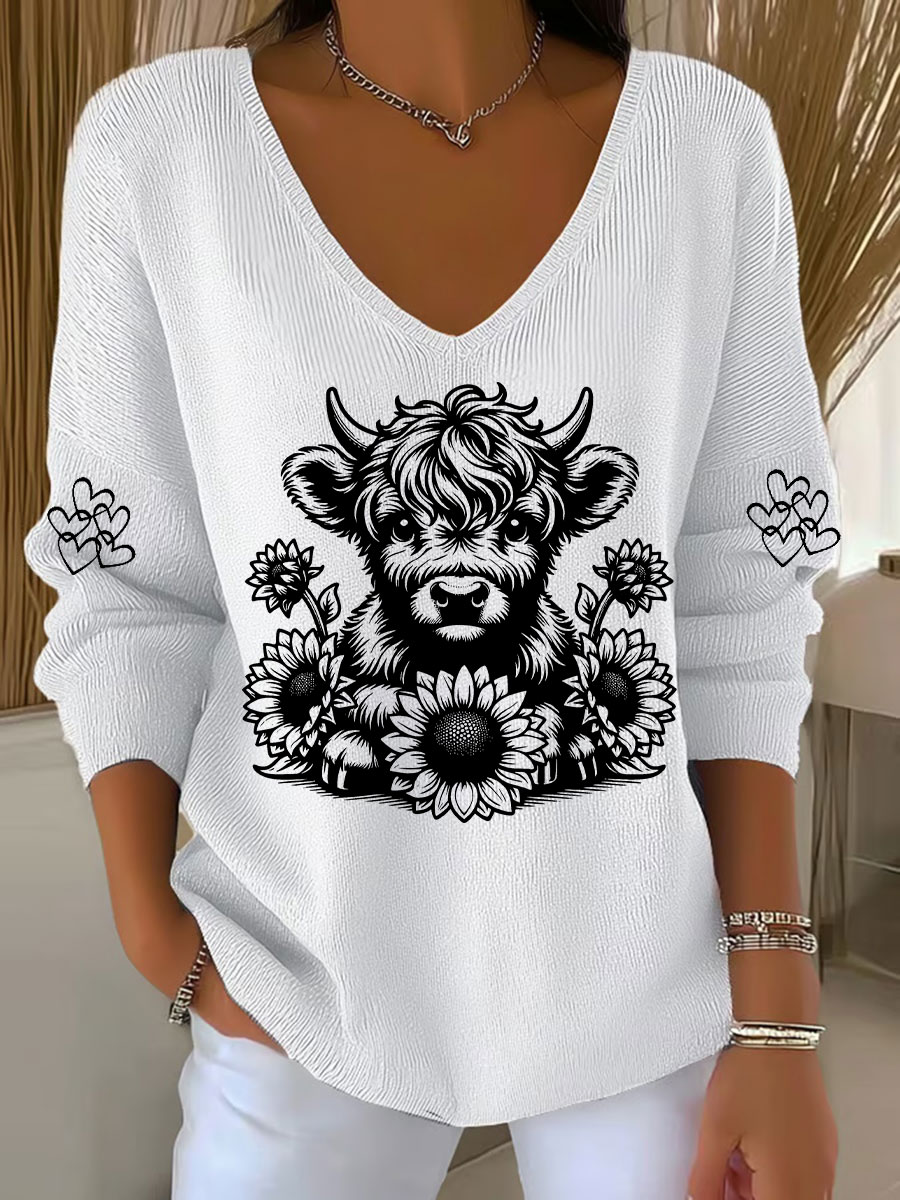 Women's Highland Cow Print Casual Top