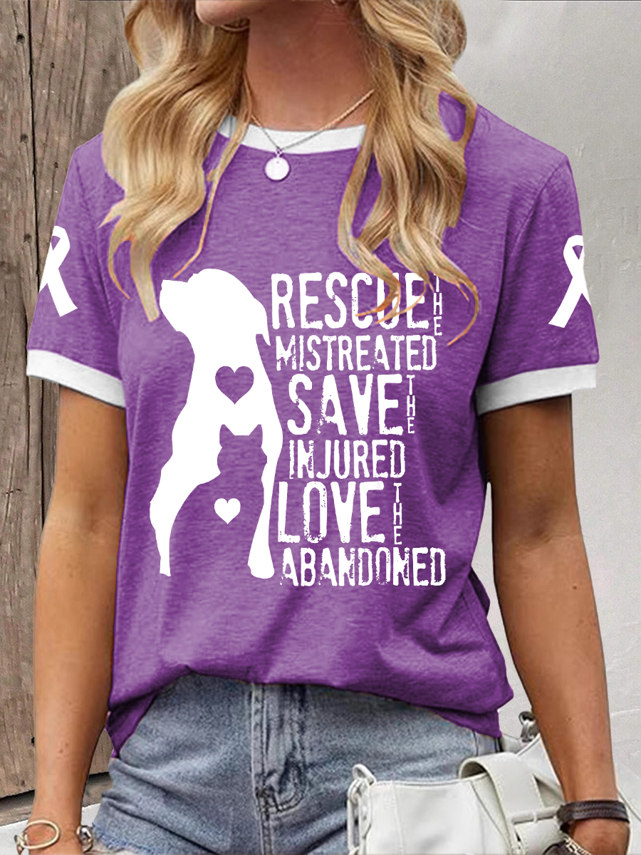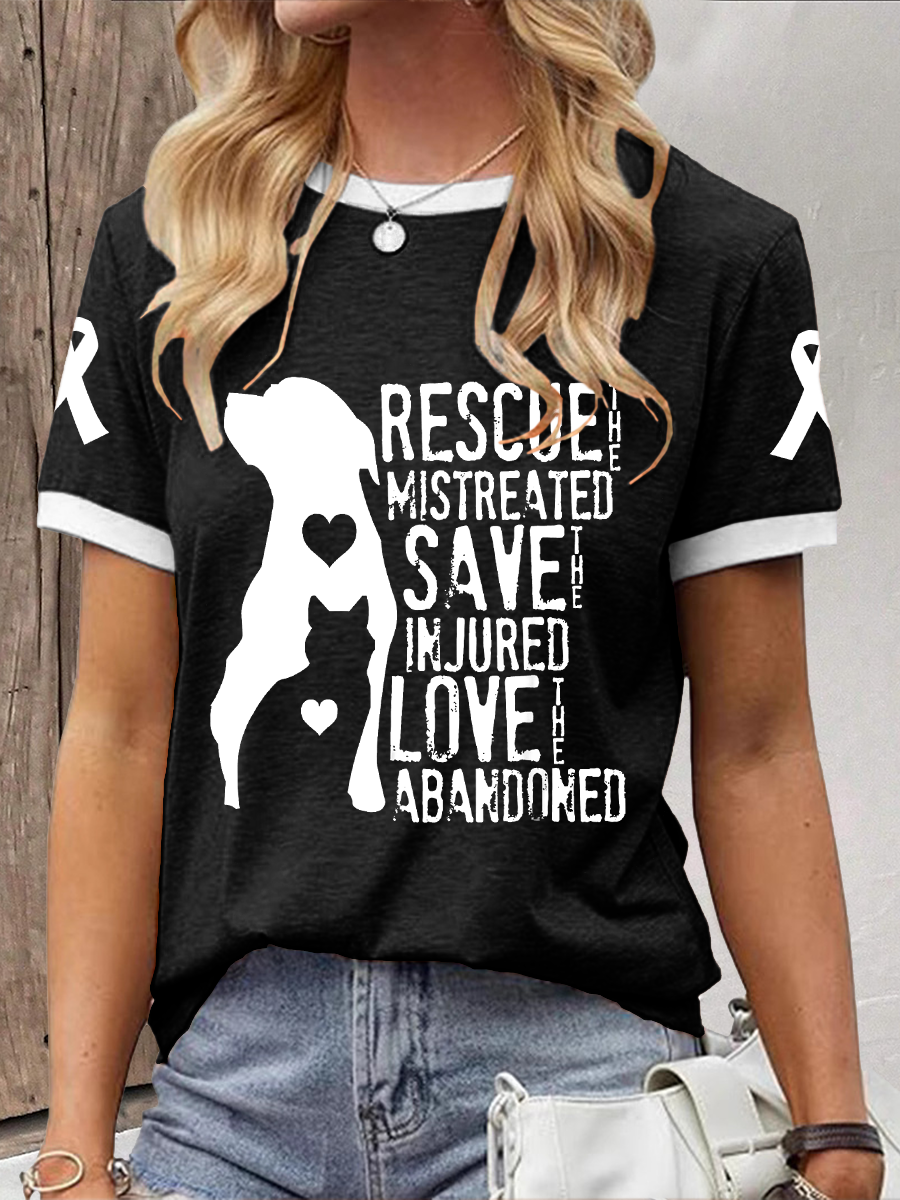 Women's rescue the mistreated save the injured love the abandoned T-shirt